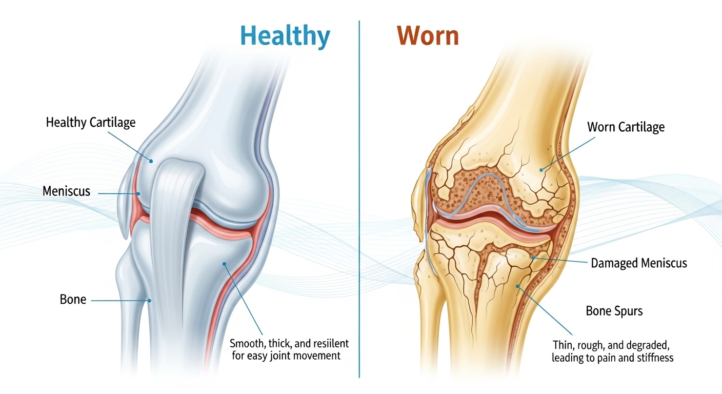 계단을 오르내릴 때 무릎이 시큰거리거나, 아침에 일어났을 때 관절이 뻣뻣하게 느껴지는 경험을 해보신 적이 있으신가요? 우리 몸의 관절은 평생 동안 끊임없이 움직이며 체중을 견뎌내는 중요한 역할을 합니다. 하지만 사용량이 누적됨에 따라 뼈와 뼈 사이를 부드럽게 연결해 주는 연골은 점차 닳게 됩니다. 연골에는 혈관이 없기 때문에 한 번 손상되면 스스로 재생되기 매우 어렵다는 특징이 있습니다.